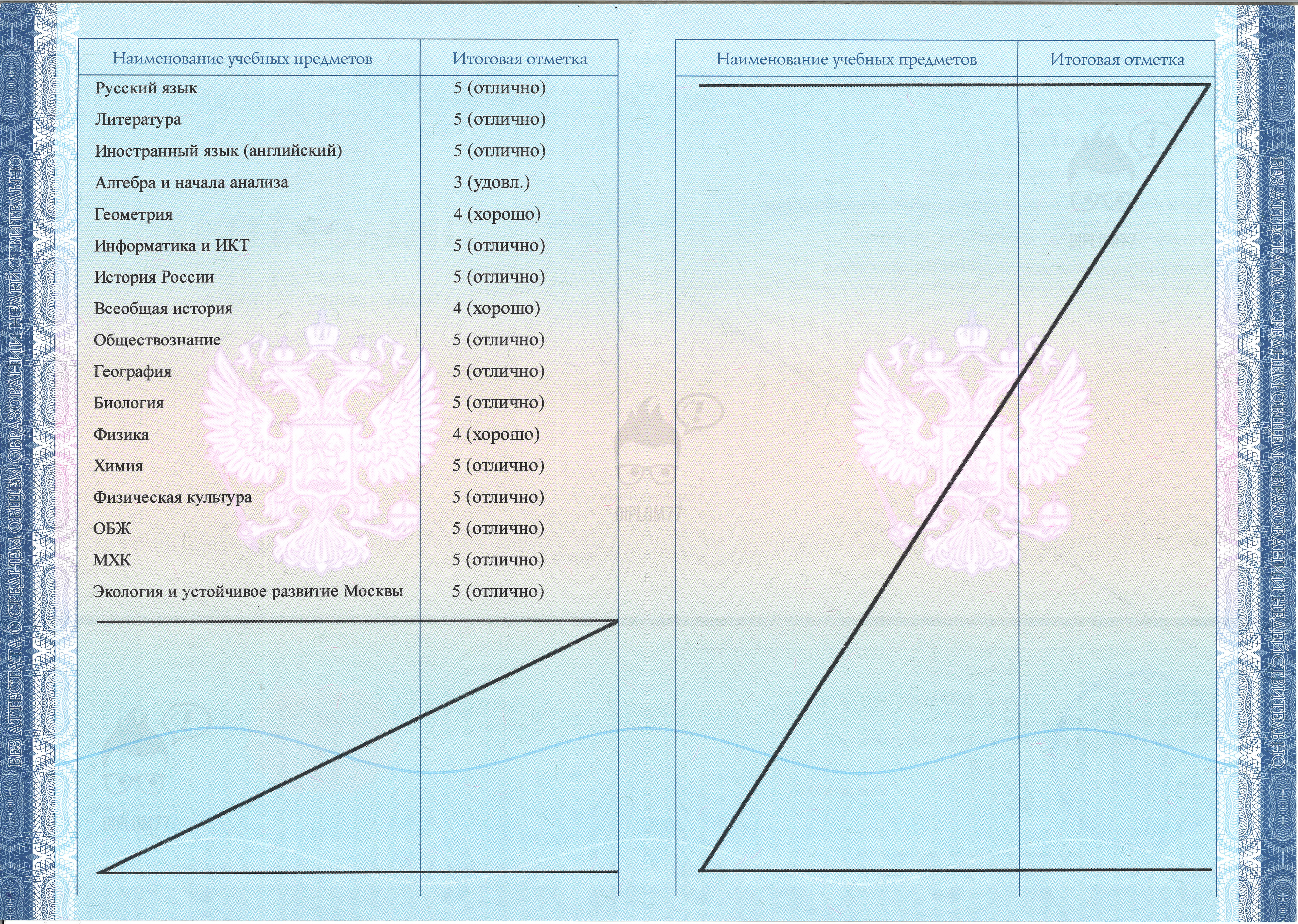 Выполняется документ на фирменном бланке ГоЗнак. В комплекте, куда входят твердые корочки, титульный бланк и приложение. Он имеет все необходимые степени защиты, «мокрую» печать школы, подписи и пр.